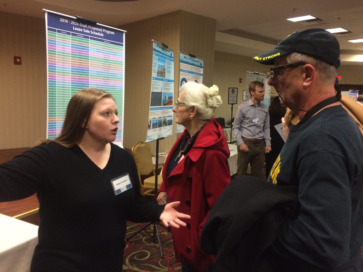 Bill Clenes, right, a retired probation officer, attended a public meeting Jan. 18 in Dover, Delaware on the Trump Administration’s plan to open 90 percent of America’s coastline to drilling. Clenes said he was there “to save the ocean from the drilling.” After attending information panels, he said he had little hope. “They act as if we have people power, but the deck is stacked,” he said.