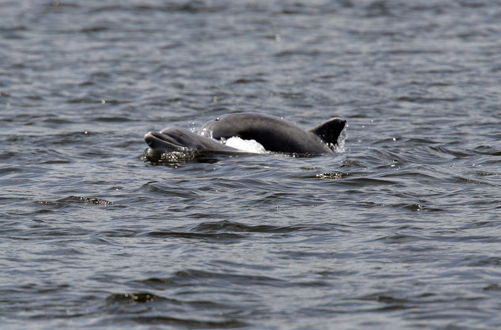 Dolphins swim in the Shrewsbury River Wednesday, July 2, 2008, in Sea Bright, N.J. (AP Photo/Mel Evans)
