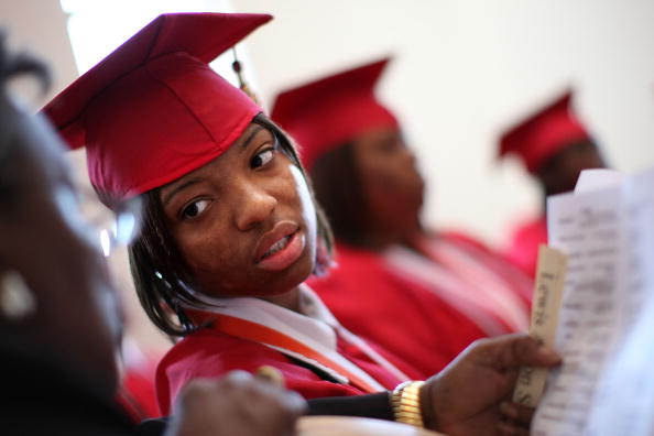 NEW ORLEANS – JUNE 03: Valedictorian Lawyna Taylor and other students of the first, and last, graduating class of Livingston High School prepare for their commencement June 3, 2008 in New Orleans, Louisiana. The school opened this past fall primarily for students displaced by Hurricane Katrina with modular classrooms on the grounds of a flooded school. The graduation was held in Franklin Avenue Baptist Church in the Ninth Ward which was also flooded with nine feet of water and only re-opened in April. The school will close this summer with plans for a new elementary school to be built on the grounds. (Photo by Mario Tama/Getty Images)